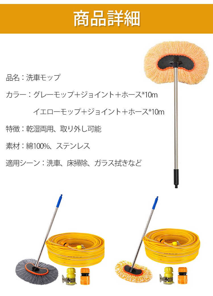 伸縮ハンドル付き洗車モップの使い方イメージ
